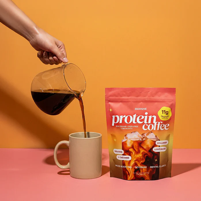 Discover your perfect morning ritual with our protein-powered coffee blend. Each serving combines 11g of collagen protein with brain-boosting Lion's Mane, creatine, and natural caffeine to energize your body and sharpen your mind. Zero sugar, dairy-free, and low acidity—just smooth, rich coffee that helps you stay focused, energized, and ready for whatever comes next.